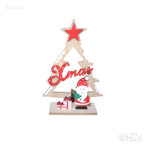 Дървена kоледна фигура „Елхичка“ с надпис “Xmas” с декорация Дядо Коледа с подаръци – стилен акцент за празничната ви декорация! Изработена от MDF материал, тази фигура съчетава уют и празнично настроение. Компактният ѝ размер (18×12 см) я прави подходяща за украса на маса, рафт, скрин, шкаф или камина. Идеална за допълнение към всяка коледна атмосфера или като подарък за близки!