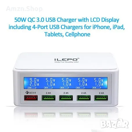 Характеристики: 50 W QC 3.0 USB 3.0 зарядно устройство с LCD дисплей ,