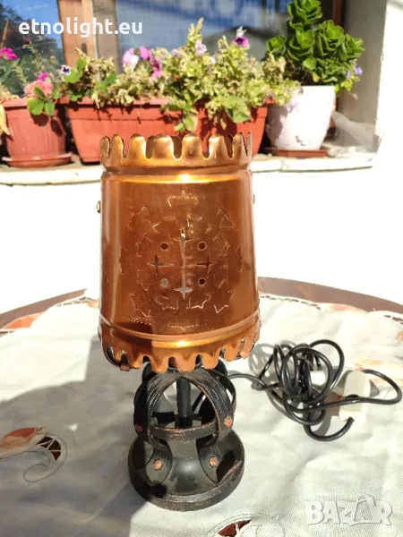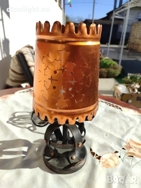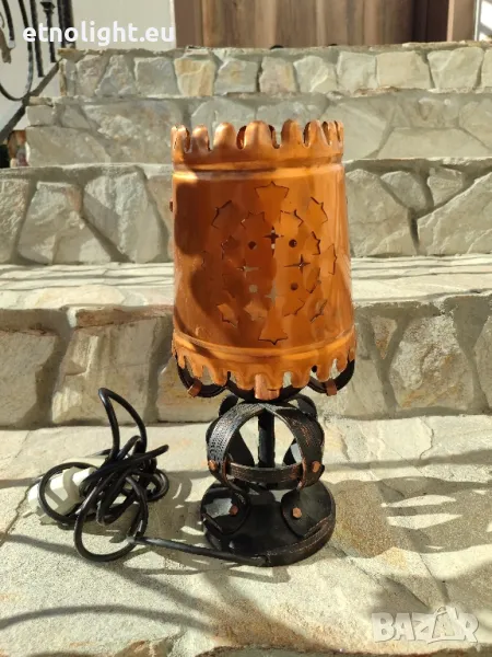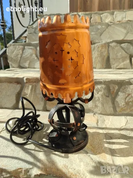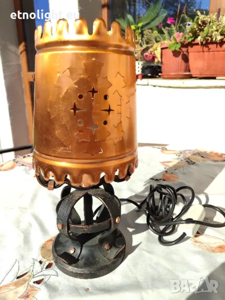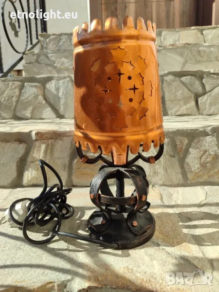 Уникална настолна лампа съчетание от ковано желязо и меден абажур с красиви орнаменти → Обява 47671571