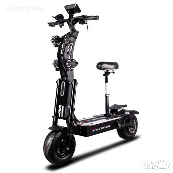 Последна Електрическа тротинетка със седалка Quickwheel Viper , 13 inch ,мощен ел.двигател 8000W в комбинация с батерия с капацитет от 40AH . Пробег с едно зареждане: до 70-80км