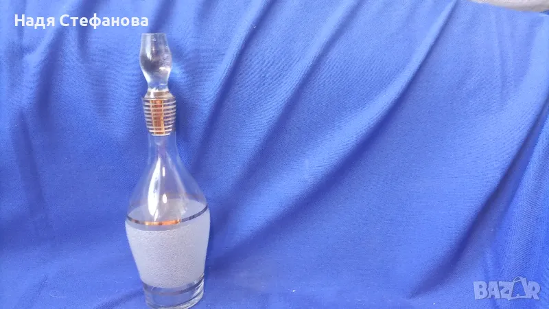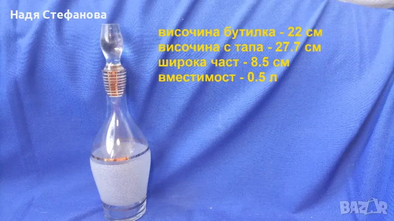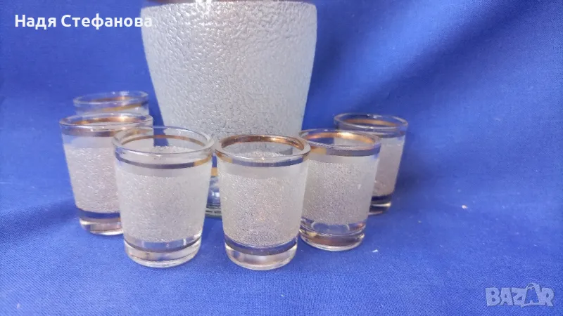 Ретро комплект бутилка с тапа и 6 чашки, ракия, златни кантове, посипка, изключителни