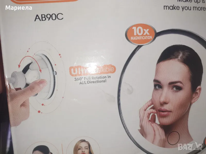 качествено козметично огледало с 10x увеличение и LED осветление.
