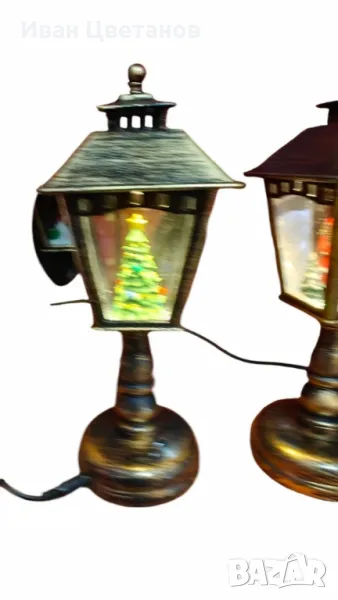 Декорации с падащ сняг и коледни фигурки вътре;