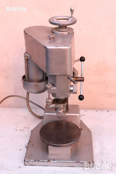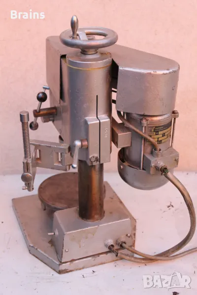 HARNISCH RIETH прецизна Немска часовникарска бормашина. Солидна метална конструкция - около 40 кг. Регулиране на оборотите с ремък. Без никакви луфтове във шпиндела, изключително прецизна. Качествен самонатягащ патронник. Въртящ се метален плот. Може да се регулира дълбочината на пробиваният отвор. Лимба с деления 0,1 мм.