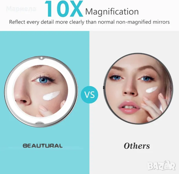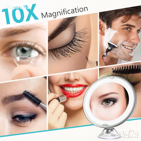 10x увеличение: Перфектно КРАСИВО огледало за нанасяне на вашия красив грим и други козметични процедури, които изискват допълнителна прецизност, например поставяне на контактни лещи и изпипване на вежди