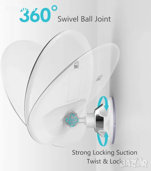 Заключваща се вендуза: Монтирайте сигурно огледалото навсякъде върху гладка равна, чиста повърхност, като например на прозорец, маса, стена и дори по-голямо огледало