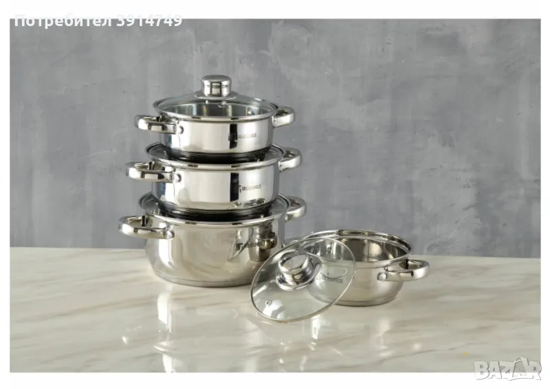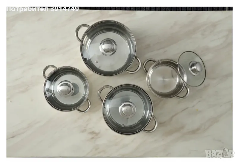 Комплект тенджери с капаци, изработени от много качествена неръждаема стомана с дебелина 4 мм. Капаци от термоустойчиво стъкло. Предлагаме отстъпки при закупуване на два или повече комплекти.