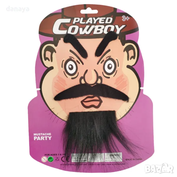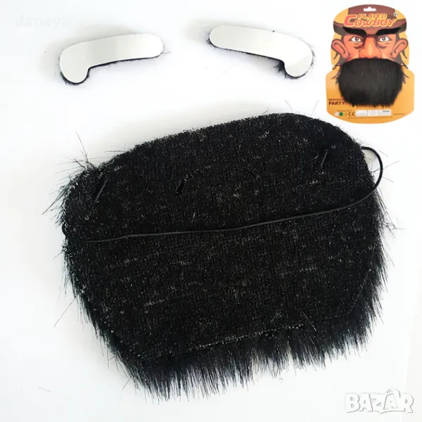 Комплект фалшива брада и самозалепващи вежди. Брадата се закрепва с ластик, а веждите са самозалепващи при модел 1. Вторият модел включва самозалепваща брада, мустаци и вежди. Подходяща за карнавали и маскаради, театрални и сценични костюми, Хелоуин, детски градини и училищни забави.