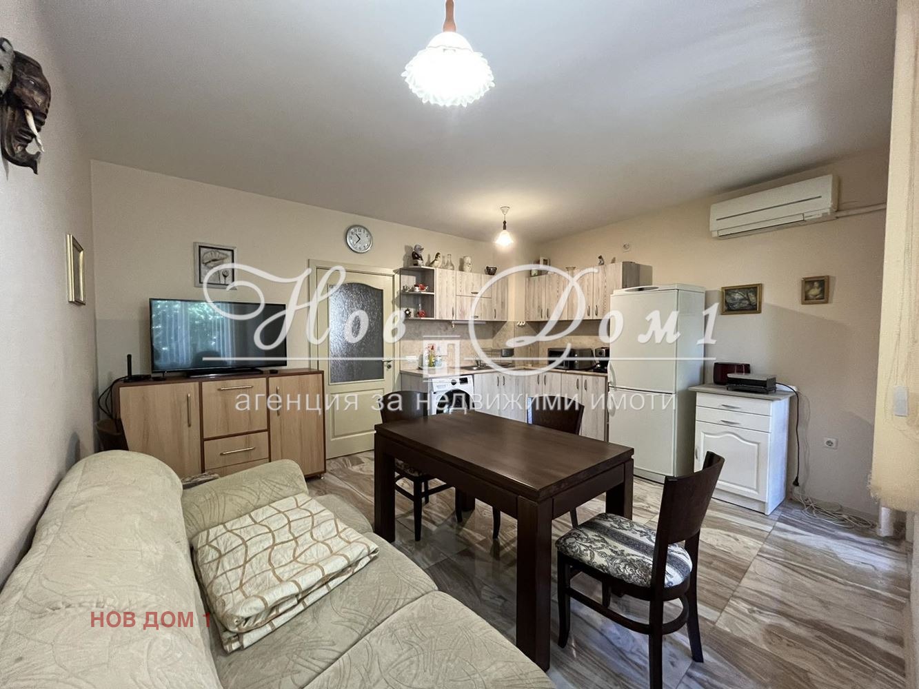 Обзавеждане: Апартаментът е напълно обзаведен с всичко необходимо за комфортен живот - модерна кухня с вградени електроуреди, климатик, удобна мека мебел и спален комплект.