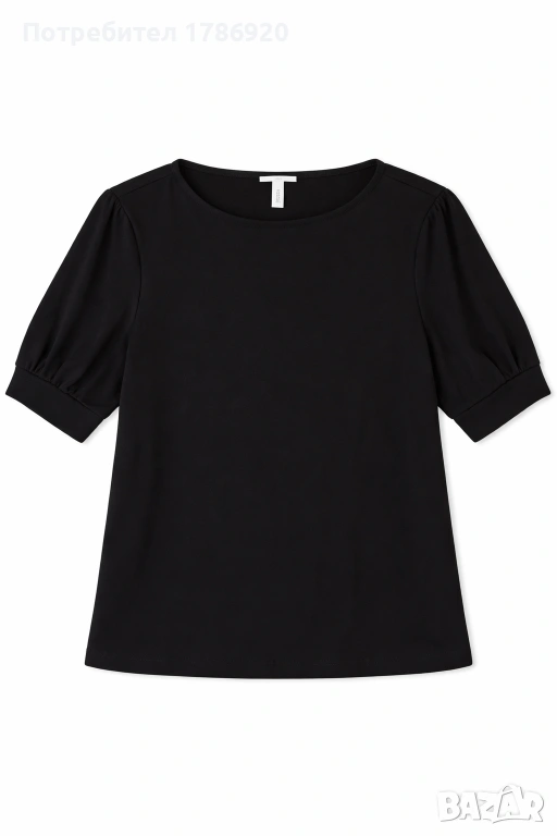 Стилна черна дамска тениска с модерни буфан ръкави. Oversize крой, който е много актуален и удобен за носене. Минималистичен дизайн, който се комбинира с всичко.
