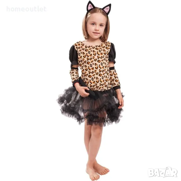 Леопардов топ от мека плюшена материя с черна тюлена пола и опашка, накитници и диадема с ушички.