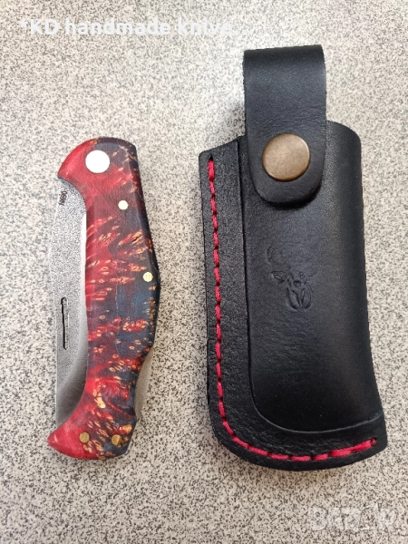 Ръчно изработен сгъваем нож + ПОДАРЪК кания от естествена кожа / джобен нож със заключващ механизъм