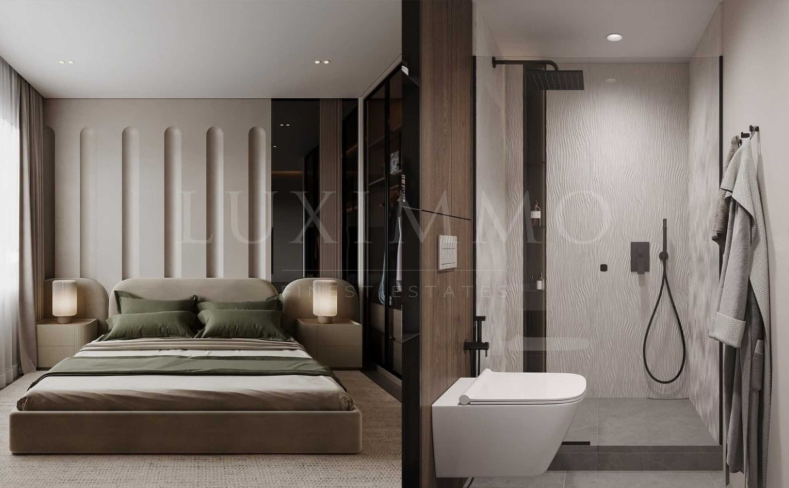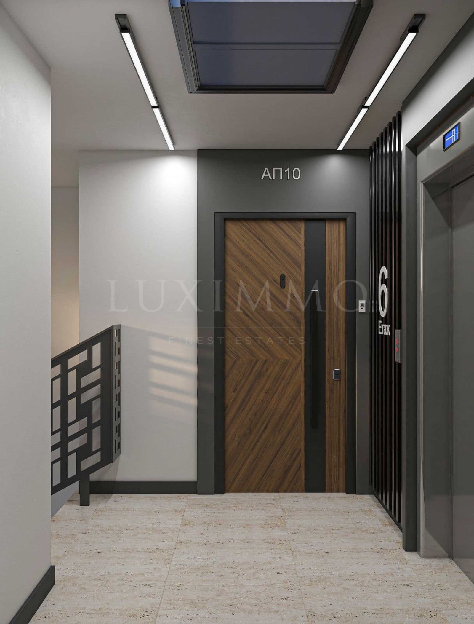 Имотът е с обща площ от 119.56 кв.м, разположен на 5-и етаж и се състои от: антре/коридор, дневна с кухня, две спални, две бани с тоалет, лоджия. Издава се в степен на завършеност по БДС, на шпакловка и замазка.