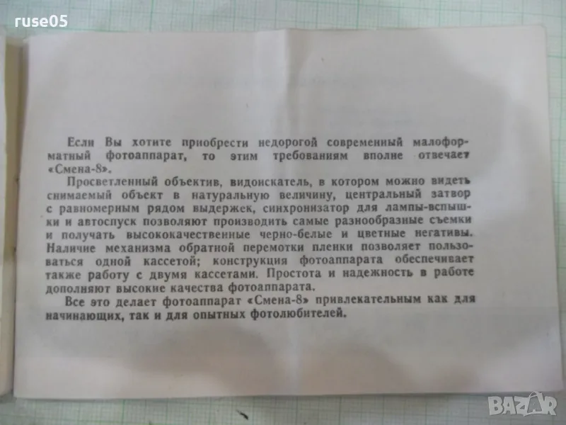 Книжка инструкция за експлоатация фотоапарат "СМЕНА 8" → Обява 47681583
