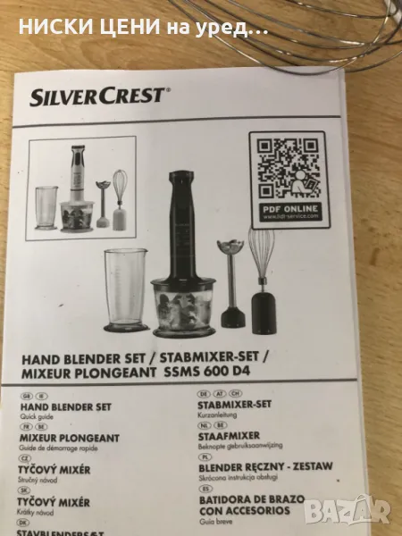 Приставки: Комплектът съдържа бъркалка, пасаторна приставка, чопър за нарязване на зеленчуци.