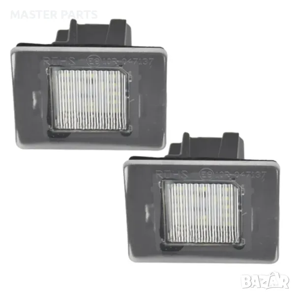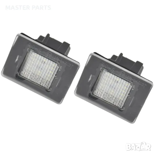 Чисто нови 2 броя LED плафони за осветление на заден регистрационен номер, съвместими с изброените модели на Mercedes-Benz. Плафоните осигуряват ярка, бяла светлина (6000K) и са оборудвани с 18 SMD LED диода и Canbus контролер, който предотвратява грешки и известия. Инсталацията е лесна и бърза, тип "plug-and-play", а материалите са с дълготрайност над 50 000 часа.