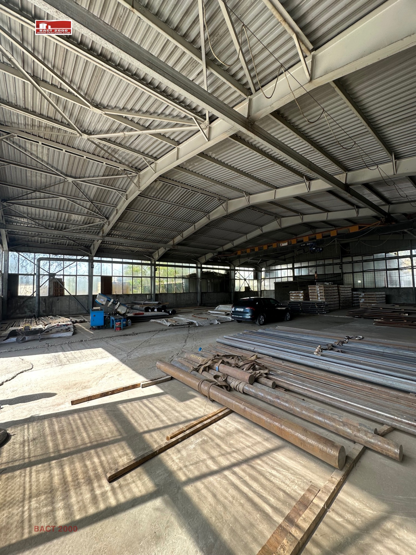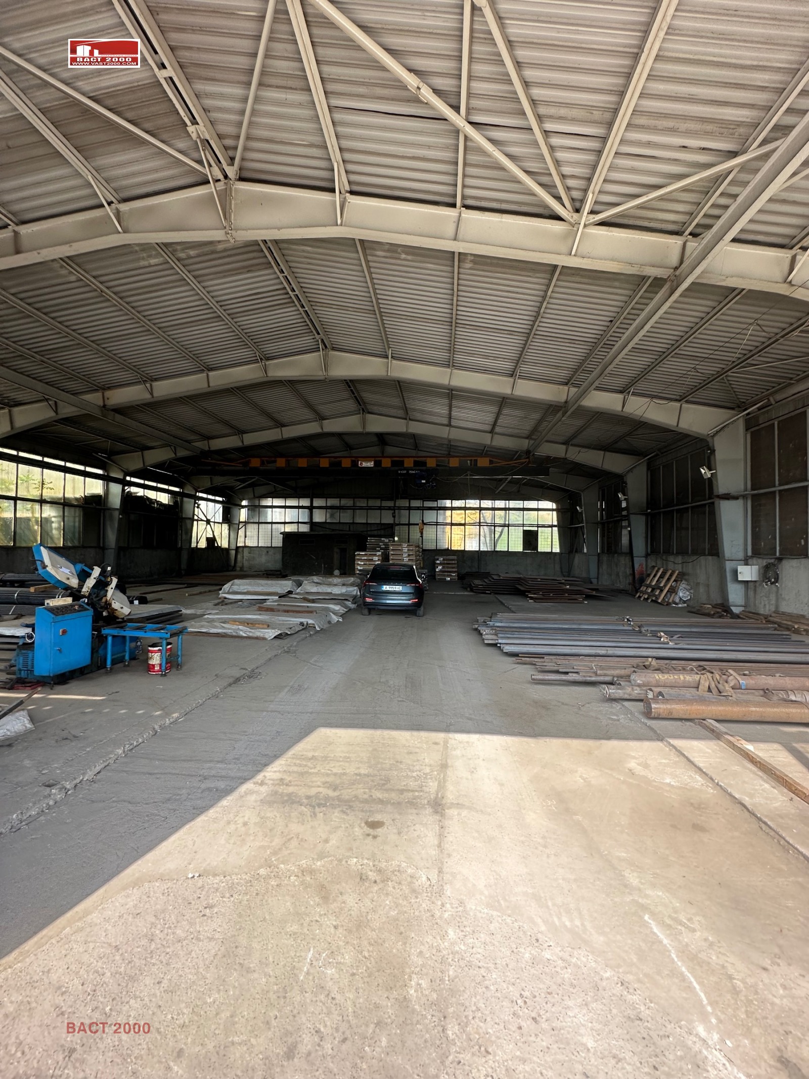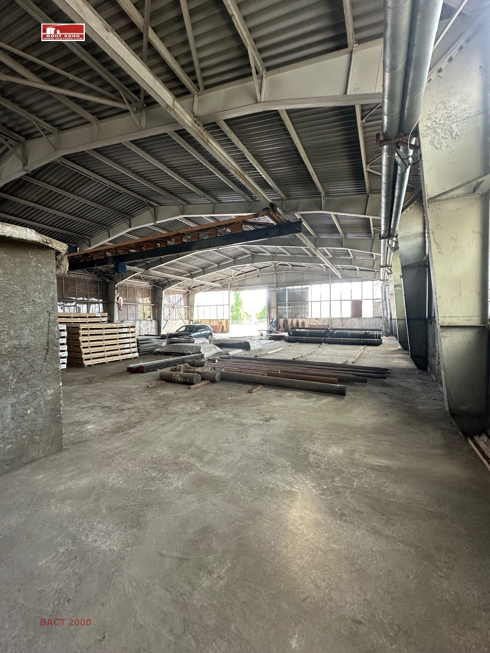 Предлагаме склад с телферен кран 5 тона, с двор според нуждите на наемателя до 2000кв.м.