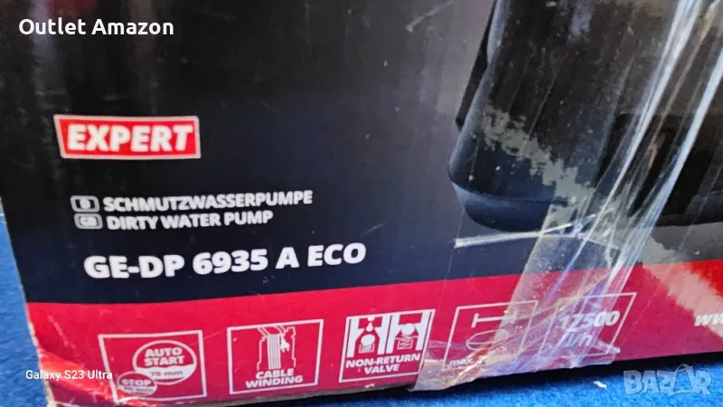 Потопяема дренажна помпа Einhell GE-DP 6935 A ECO е с мощност 690 W, максимален напор 9 м и дебит 17500 л/ч. Оборудвана е с технология Aquasensor с три автоматични стартови височини на сензора. Потопяемата помпа за мръсна вода има възвратен клапан, ергономична дръжка за носене, интегрирана примка за окачване и висококачествено механично уплътнение за дълъг експлоатационен живот. Корпусът е изработен от удароустойчива пластмаса.