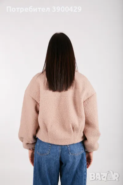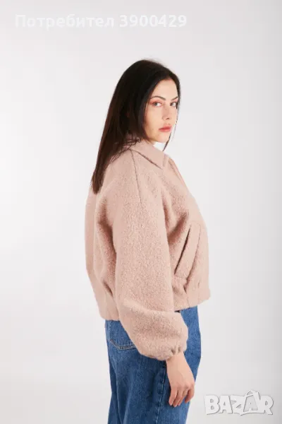 Открийте нашето вълнено дамско бомбър яке с модерен буфан ръкав, еластични маншети и странични джобове.