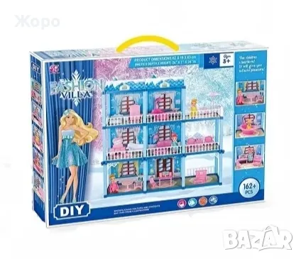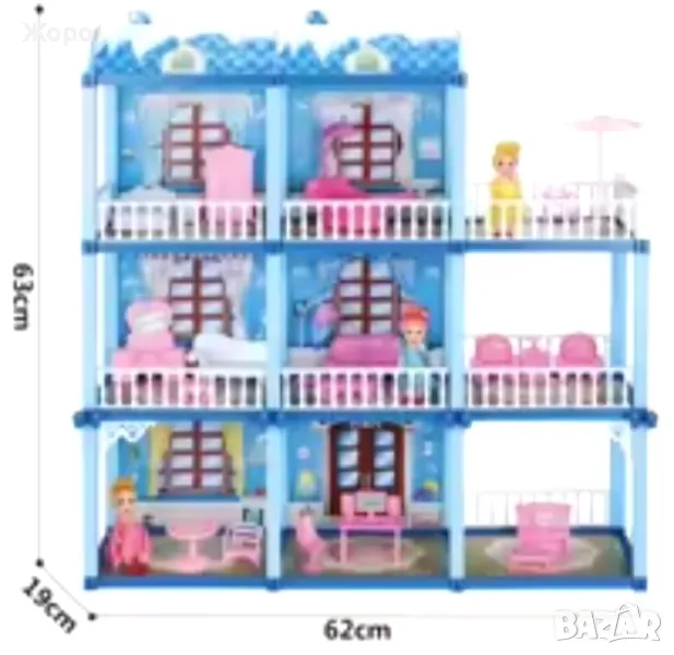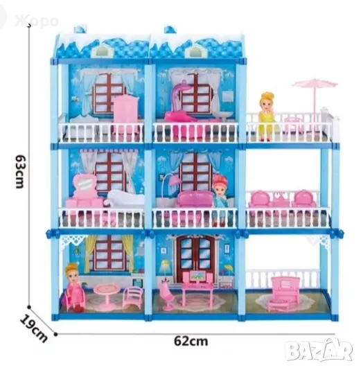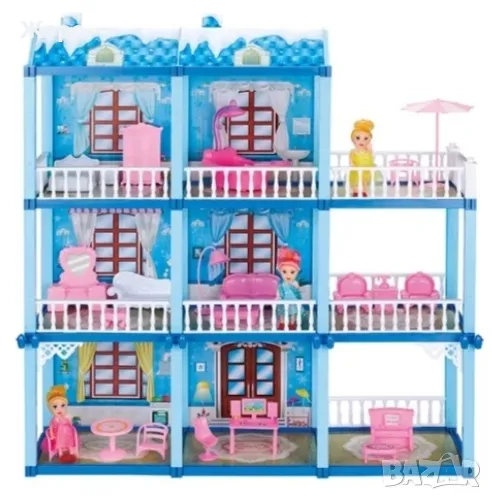 ДЕТСКА КЪЩА/ВИЛА ЗА КУКЛИ ТРИ ЕТАЖА С МЕБЕЛИ 140396
