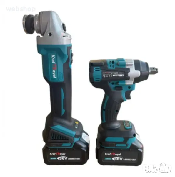 Комплект от акумулаторен ъглошлайф и гайковерт 36V 8Ah