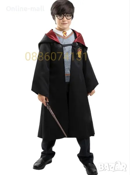 - Детски костюм на Хари Потър, който включва роба, магическа пръчка, шал, вратовръзка и очила.