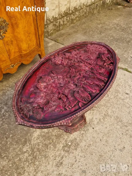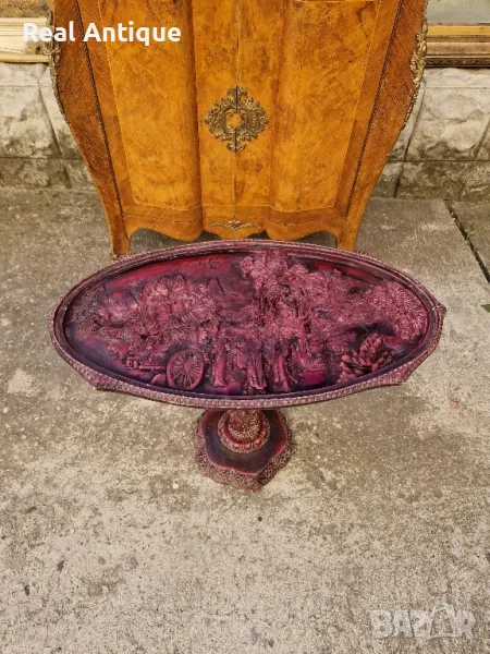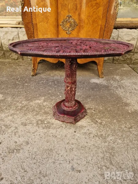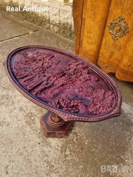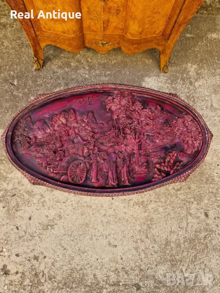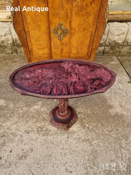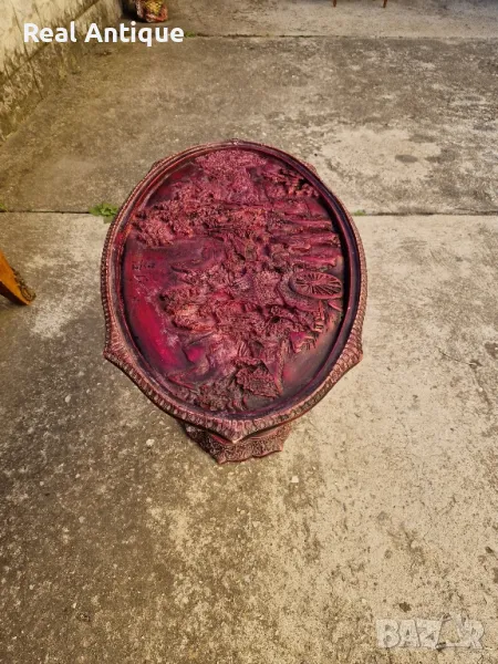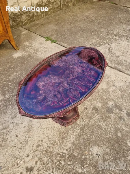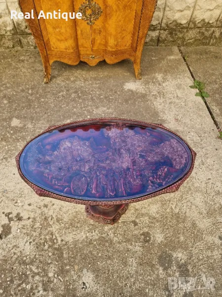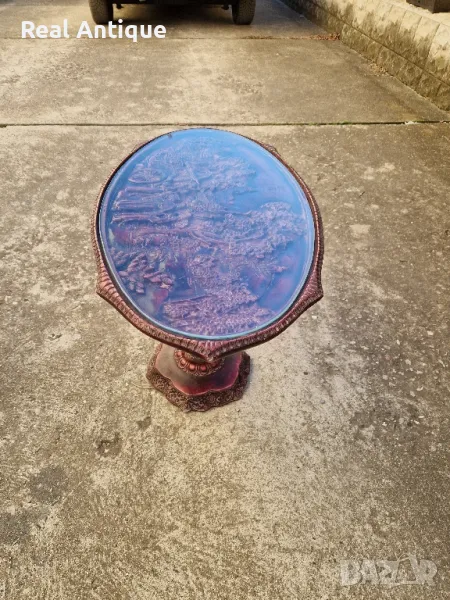 Продавам много красива китайска овална фигурална масичка в много добро състояние с предпазностъкло. Дължина 66 см ширина 38 см и височина 46 см. Чудесно допълнение към интериора на Вашия дом офис вила. Подходяща и за подарък. Работя с всички куриери. Отговарям бързо.