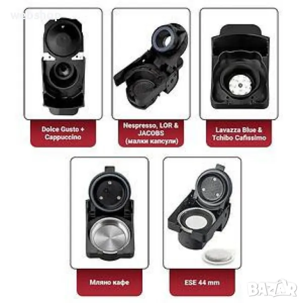 - 5 различни адаптера за кафе: