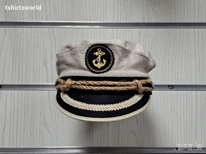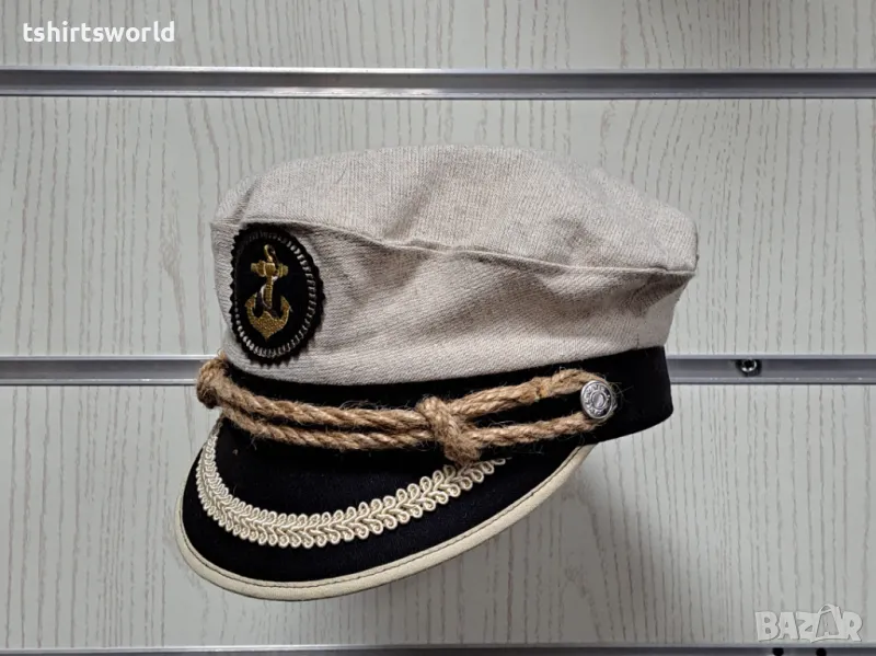 Страхотна нова бежова капитанска шапка с Котва с регулираща се ширина отзад