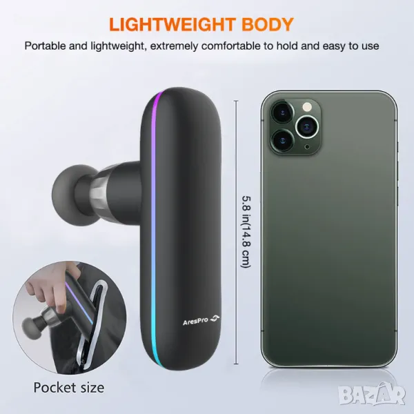 Мини пистолет за масаж: тегло само 0,4 кг. Изключително лесен за пренасяне, много удобен за вас и вашето семейство, независимо дали пътувате, карате колело или си почивате по време на спорт на открито, това е отличен избор.