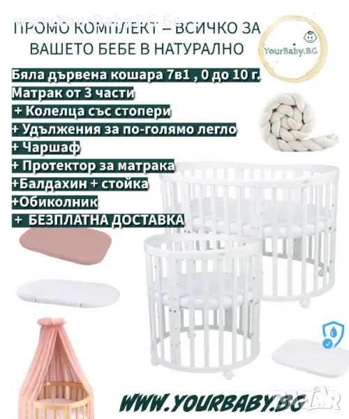 Нашата овална кошара 7в1 е плод на дългогодишен труд и опит. Изработена е от букова дървесина, която се отличава със здравина и същевременно лекота. Тази мебел за деца ще се превърне в основна украса на интериора и функционално оборудване. Ще осигури на вашето мъниче спокоен и безопасен сън.