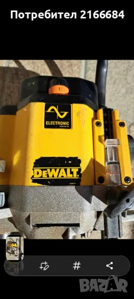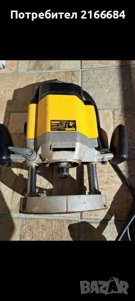 Оберфреза девалт/dewalt DW625E-2000w-240V-1/2 захват на цангата,машината работи добре,липсва копчето за контара на цангата,фрезерите се стягат като се държи контра с ключ.Продава се само тялото което е на снимките.