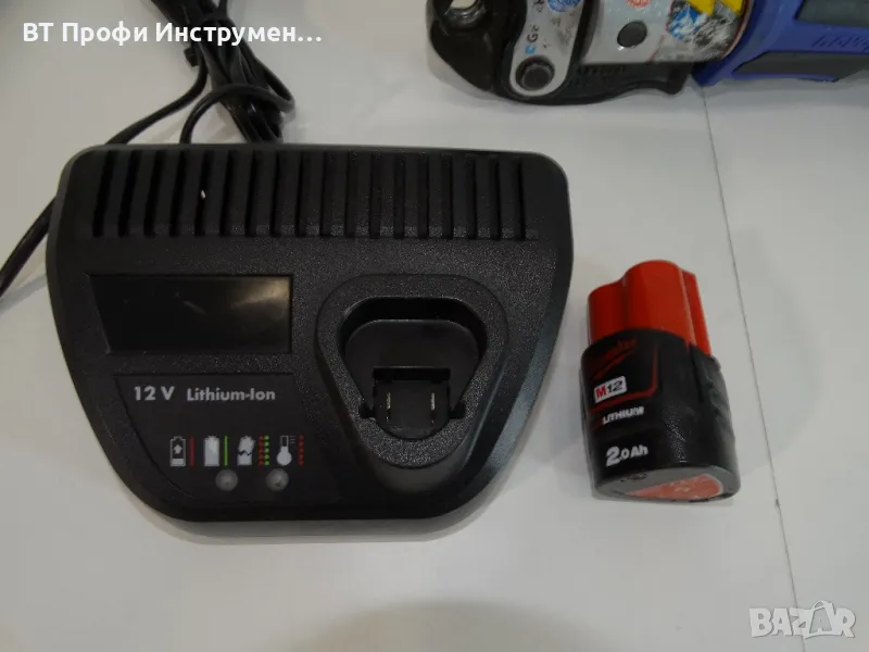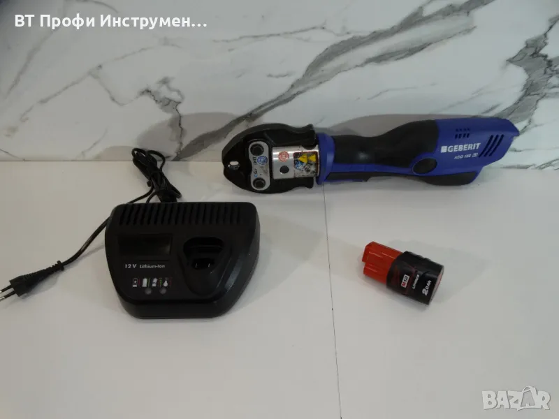 Машината работи перфектно . Предлага се както е на снимките . 1 батерия 12 V / 2.0 Ah и зарядно . Подарък прес клещи Geberit