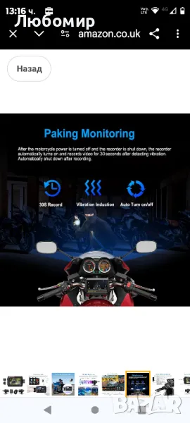 Мотоциклетна камера, наблюдение на паркиране, GPS, нощно виждане Камера за мотоциклет