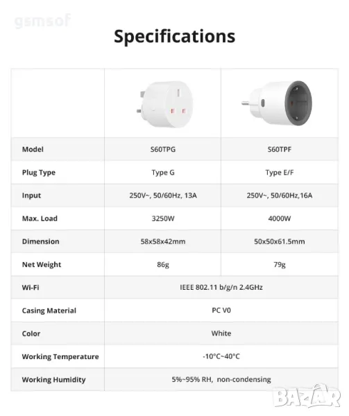 Sonoff S60TPF - смарт контакта е предназначен да управлява вашите