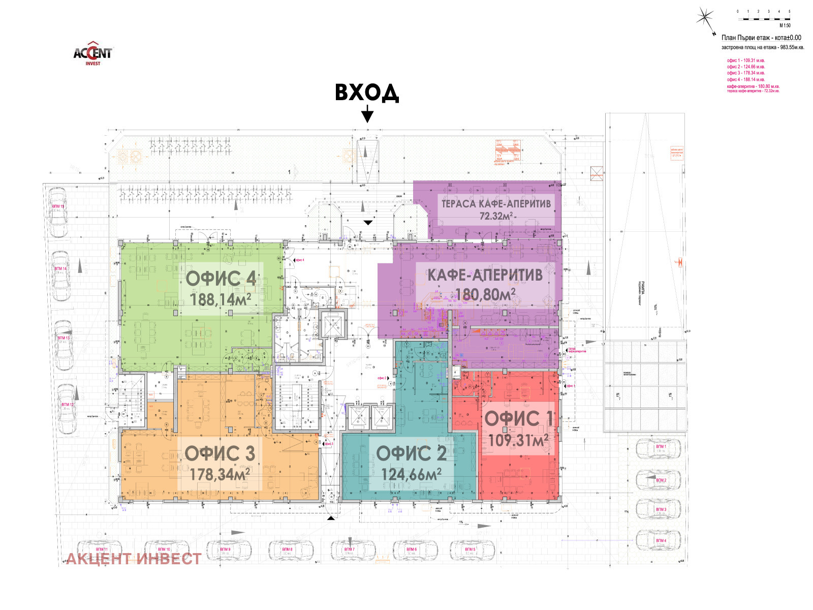 КОД 21080 'Акцент Инвест' Ви предлага офиси и заведение за хранене за продажба и отдаване под наем в иновативна и многофункционална бизнес сграда от клас А тип open space.