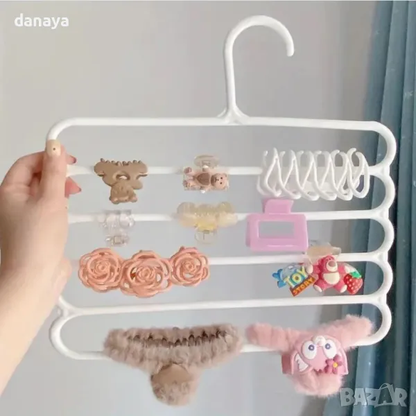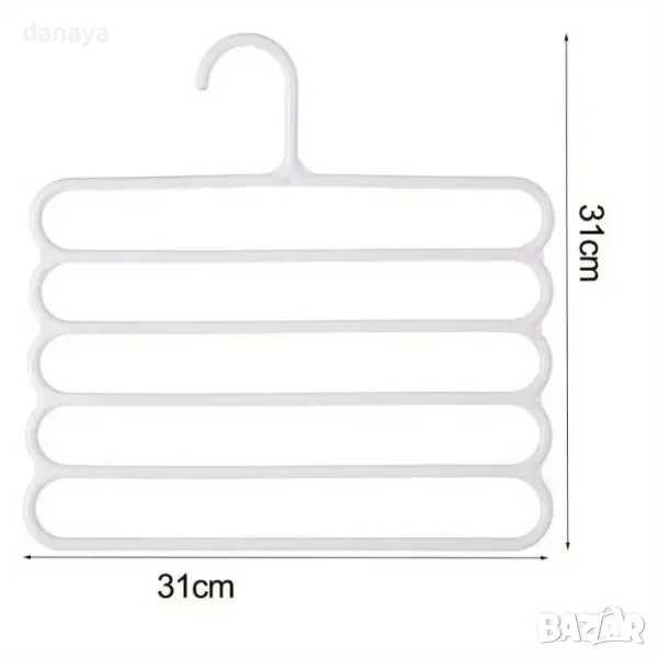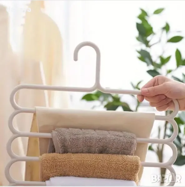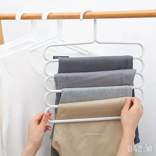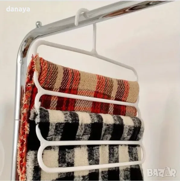 Пластмасова закачалка на 5 нива, подходяща за организиране на дрехи като поли, панталони, шалове и т.н. Удобен начин за съхранение на дрехите в гардероба. Чудесен органайзер за гардероб.
