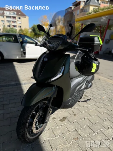 Скутера е купен от България,в момента е на 1500км,първа регистрация 29.8.2024г.Цвета е Verde Jungle (зелен мат).Допълнително оборудван със слюда и куфар Givi Blade.Две години гаранция до август 2026г.Обслужен в италиямото май месец.