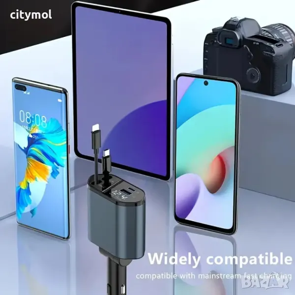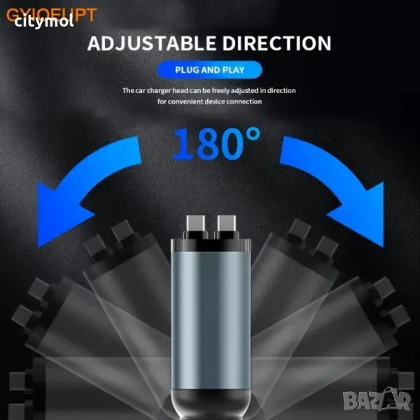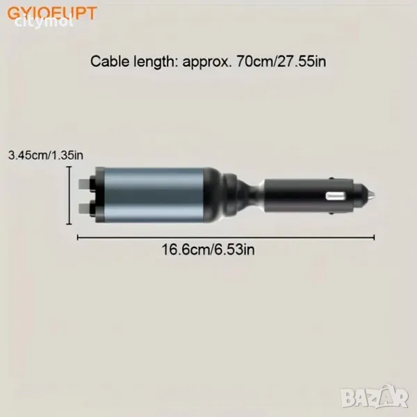 Зарядното за кола е оборудвано с 2 кабелa Type-C , които могат лесно да достигат и да зареждат на задната седалка, елиминирайки неприятностите от забравяне на кабела за зареждане и поддържайки колата чиста и подредена.