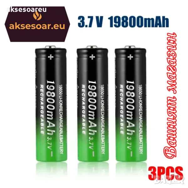презареждаща батерия 3.7V 18650 19800 mAh за фенерче LED фенер, челник лазер