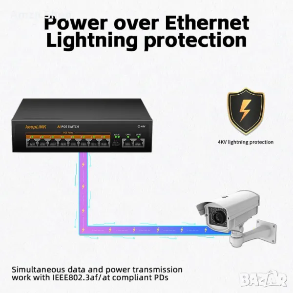 keepLiNK 10-портов гигабитов PoE Switch превключвател 8 порта Gigabit PoE+ и 2 гигабитови порта