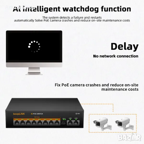 AI WatchDog: Поддържа AI watchdog интелигентно откриване. Когато POE устройството се повреди или се срине и излезе офлайн, то автоматично ще рестартира устройството, за да възстанови връзката, да опрости работата и поддръжката.