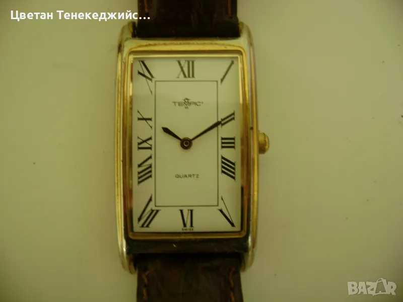 3.Дамски швейцарски часовник Tempic.Работи точно.Кафява кожена каишка.Височина 34,6 мм,широчина-22,8мм.-30лв.