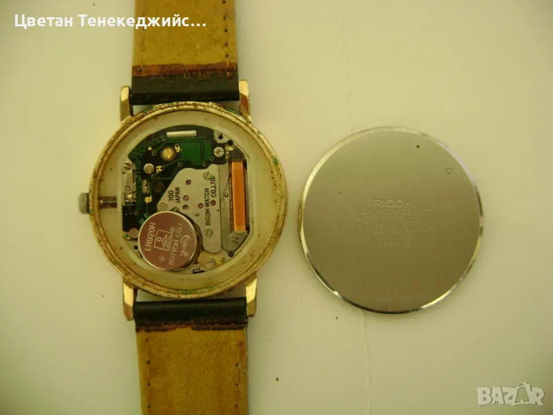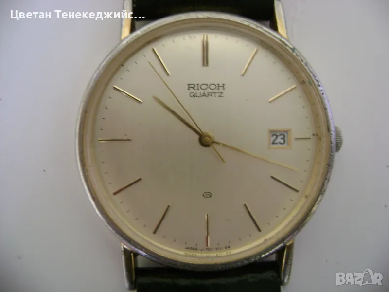 4.Японски часовник Ricoh.Работи точно.Датник.Механизъм с 4 камъка.Водоустойчив.Диаметър на касата без коронката 32,2 мм.Кожена каишка.-45лв.