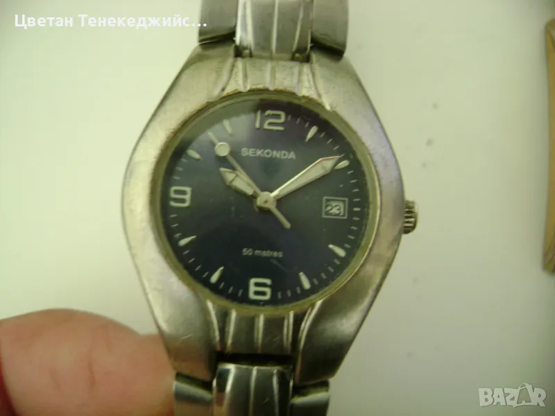 2.Кварцов часовник дамски Sekonda.Работи точно.Датник.Водоустойчив 50м.Диаметър на касата без коронката 28,8 мм.Оригинална верижка с двойно закопчаване.-20лв.