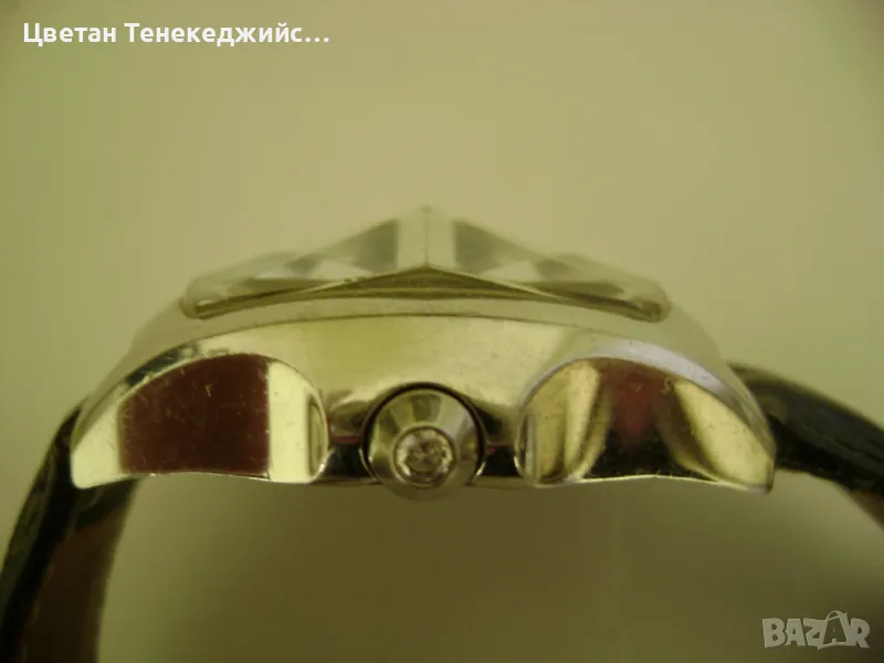 5.Кварцов часовник Chronotech.Работи точно.Датник.Осмоъгълно пирамидално стъкло.Водоустойчив.Оригинална кожена каишка.Ширина 36 мм,височина 38 мм.-40лв.
