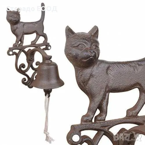 Чугунена камбанка с котка. Размери - 14.3 см х 13.2 см х 24.2 см. Тегло -