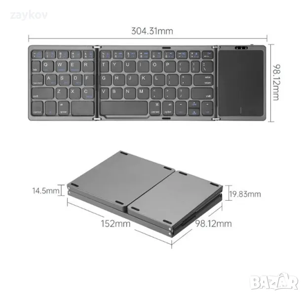 B089T Сгъваема безжична клавиатура с тъчпад Сгъваема Bluetooth клавиатура → Обява 47694926