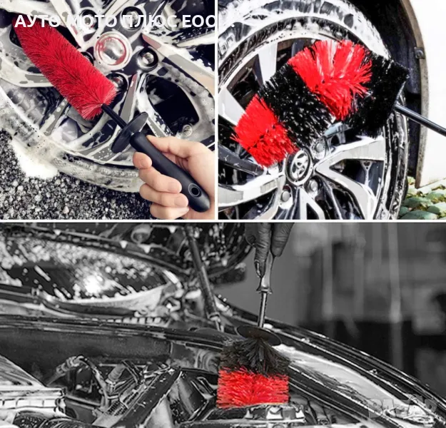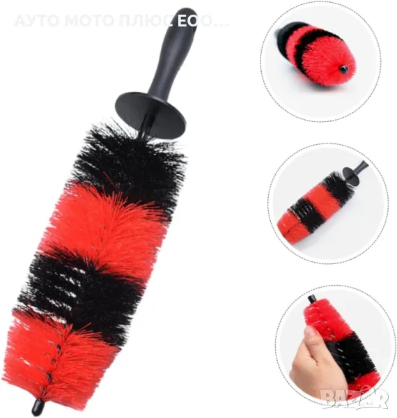 Tя може да се използва за всички видове джанти. Огъва се свободно и така можеш да почистиш цялата повърхност на джантата, без да се затрудниш. С четката ще достигнете и почистите и задната част на джантата. Четката за джанти на е направена от деликатни найлонови влакна, които са устойчиви на силни почистващи препарати. Въпреки своята деликатно структура, четката почиства перфектно мръсотията натрупала се по джантите. Едно от предимствата на четката е, че има гумено покритие, което предпазва повърхността от надраскване.