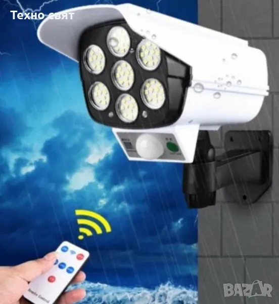 Соларна лампа 600W имитираща камера за видеонаблюдение с дистанционно → Обява 47695197